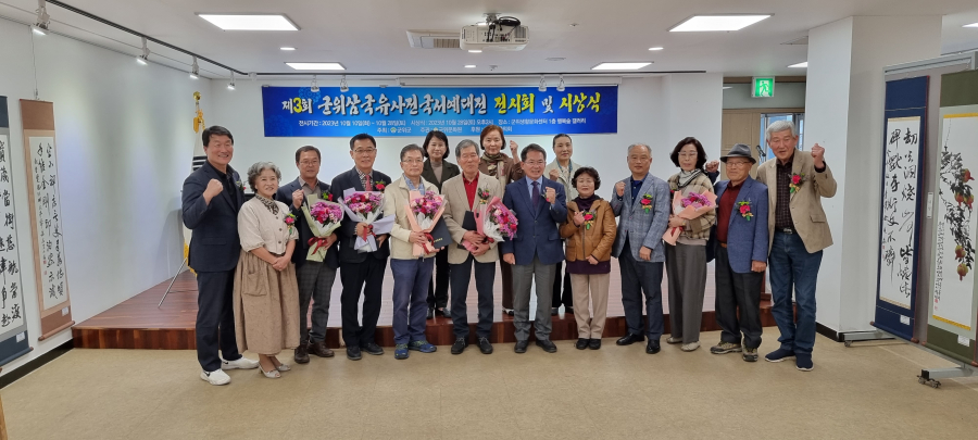 군위문화원(원장 박승근)은 지난 28일 군위생활문화센터 행복숲갤러리에서 김진열 군위군수, 박수현 군의회의장, 군위문화원 이사 등이 참석한 가운데 제3회 군위삼국유사 전국서예대전 시상식을 개최하였다.